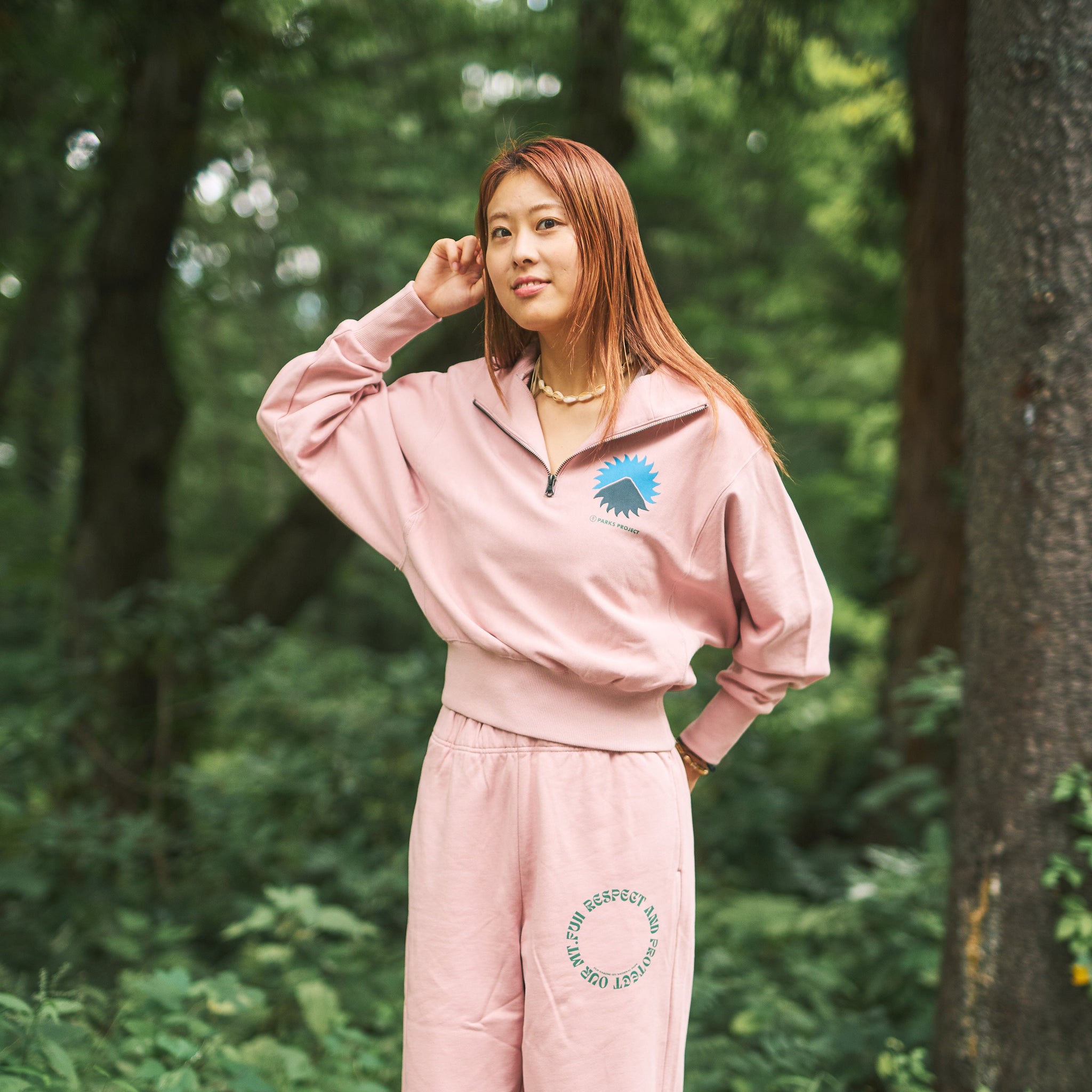 ハーフジップ仕様のスウェットジップパーカーに”Mt.FUJI”をイメージしたグラフィックをプリント。